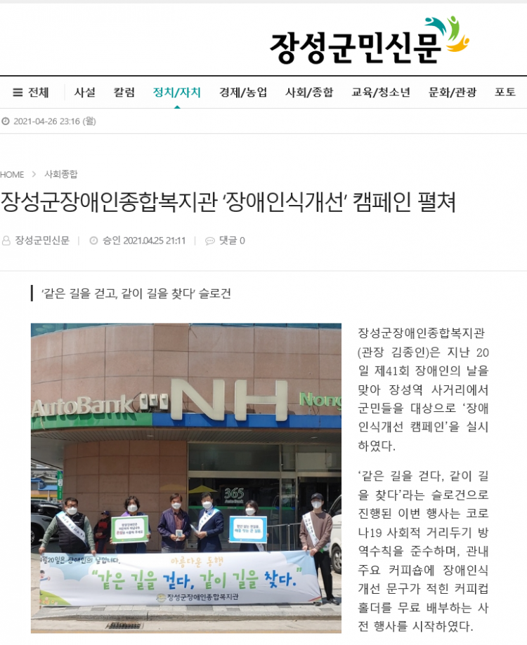 | 다음글 장성투데이-장복, 장애인의 날 맞아 장애인식개선 캠페인 |