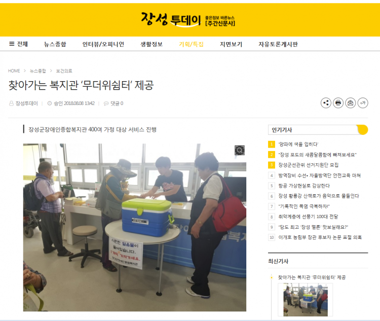| 이전글 장성방송국-장성군장애인종합복지관, ‘찾아가는 복지관’서비스 및 ‘무더위쉼터’ 제공 |