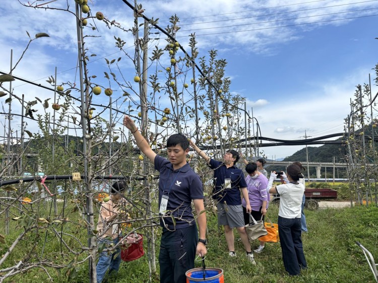 그동안 정성껏 가꿔온 사과가 최근 쏟아진 비로 인해 많이 떨어져 아쉬웠지만, 남아 있는 사과를 정성껏 수확하며 풍성한 기쁨을 나눴습니다. 양손 가득히 수확한 사과를 박스에 담는 순간, 참여자들의 얼굴에는 웃음꽃이 피어올랐습니다. 올해 초부터 직접 키운 사과를 수확하는 성취감과 즐거움이 더해져 행복한 시간이 되었습니다.