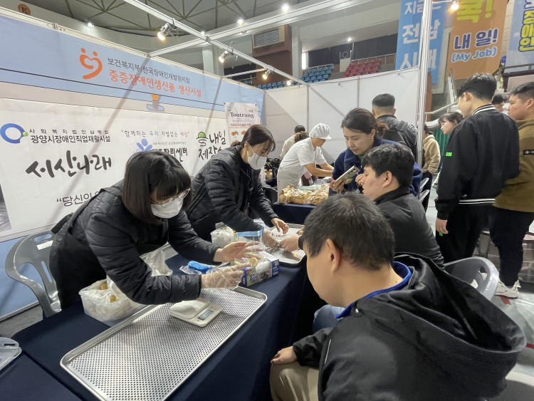 직업적응훈련반은 11월 17일(월) 순천팔마경기장에서 개최된 2025 장애인일자리박람회에 참여하여 다양한 직업체험과 사전 취업 모의훈련을 진행하였습니다.