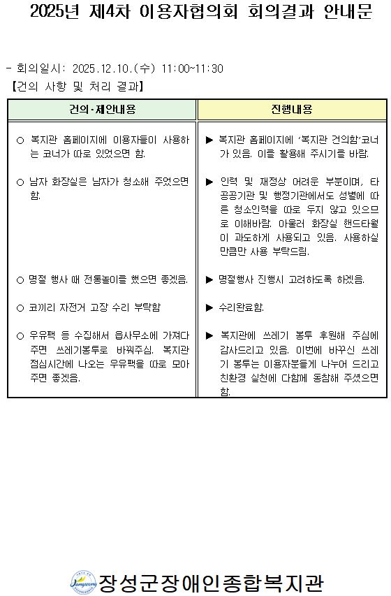 장성군장애인종합복지관 최종 합격자 공고 (중증장애인직업재활지원사업 수행인력-훈련지원인)