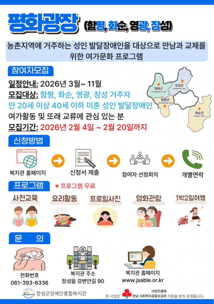 2026년 농촌지역 성인 발달장애인의 사회적 관계 형성을 지원하기 위한 「평화광장」 사업을 운영하고자 합니다.