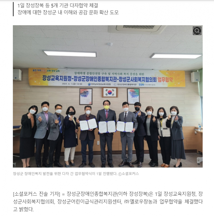 | 이전글 장성군민신문-장성군장애인종합복지관, 장애인 복지발전을 위한 업무협약 체결 |