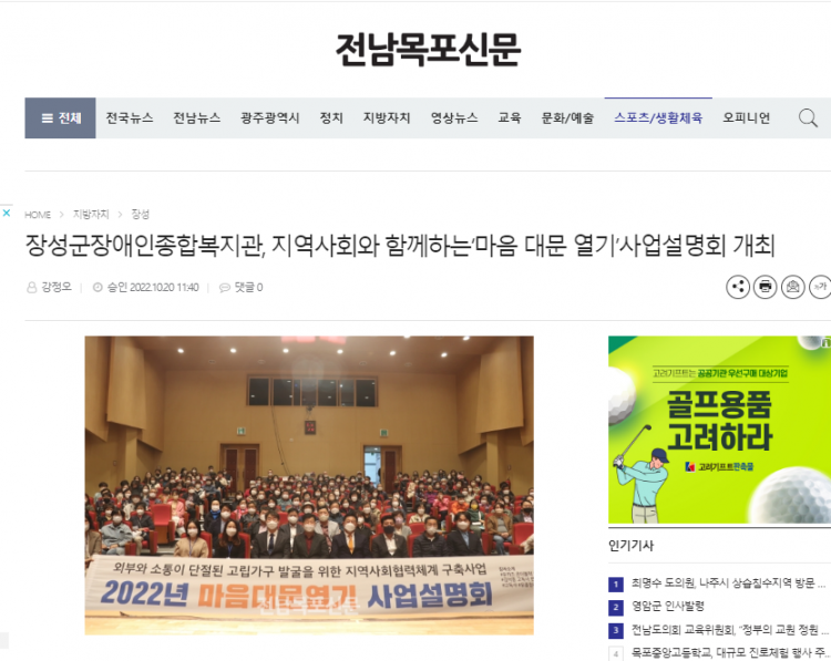 | 이전글 장성군민신문 - ‘마음 대문 열기’사업설명회 개최 |