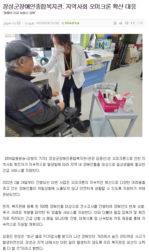 | 다음글 장성군민신문-장성군장애인종합복지관, 지역사회 오미크론 확산 대응 |