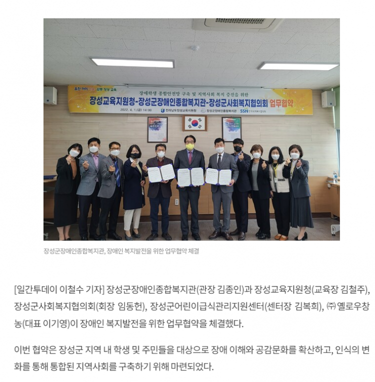 | 이전글 서울뉴스통신-장성군장애인종합복지관, 장애인 복지발전을 위한 업무협약 체결 |