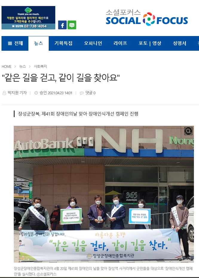 | 이전글 장성투데이-장성군장애인종합복지관장 김종인/ 같은 길을 걷고, 같은 길을 찾은 장애인의 날을 맞아 |