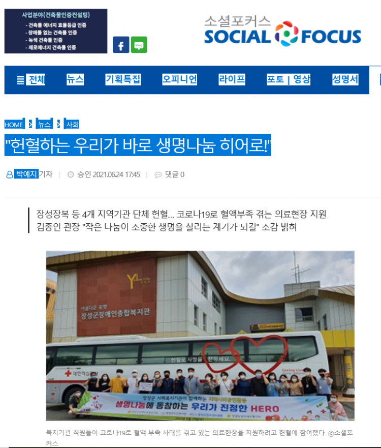 | 이전글 한국지체장애인협회 -장성장복 "헌혈하는 우리가 바로 생명나눔 히어로!" |