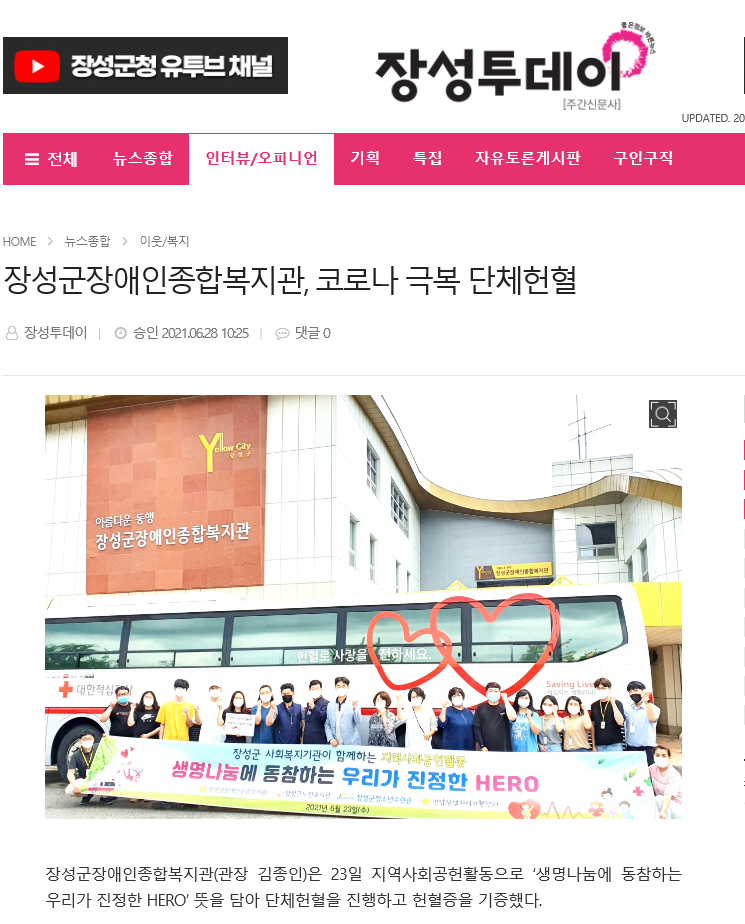 | 다음글 장성군민신문-코로나19 극복을 위한 장성군장애인종합복지관 단체헌혈 |