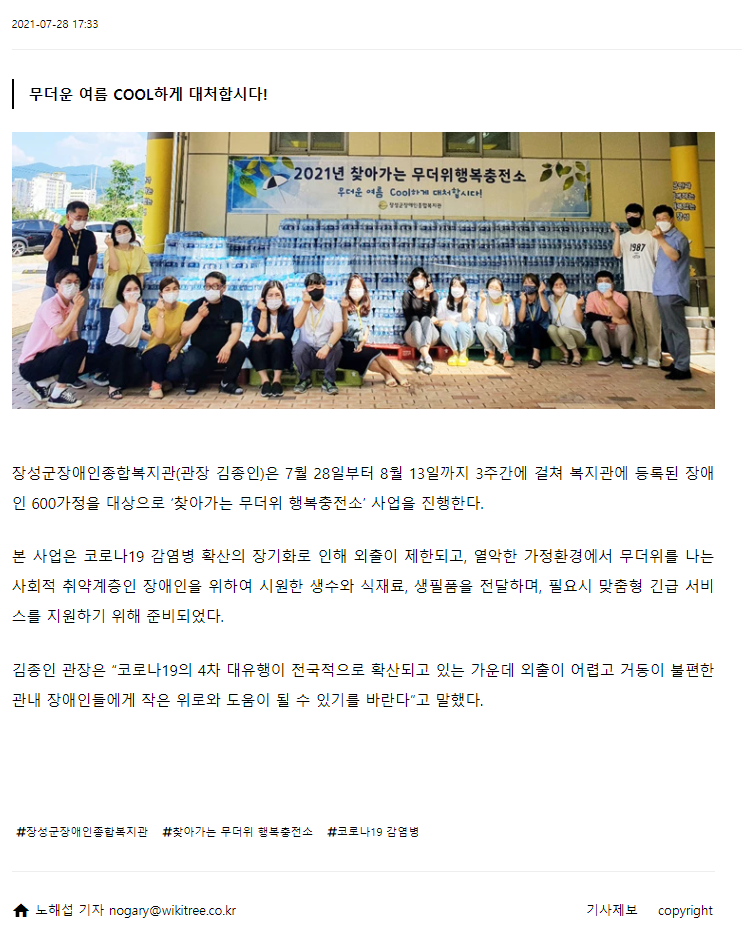 위키트리-장성군장애인종합복지관 ‘찾아가는 무더위 행복충전소’ 운영