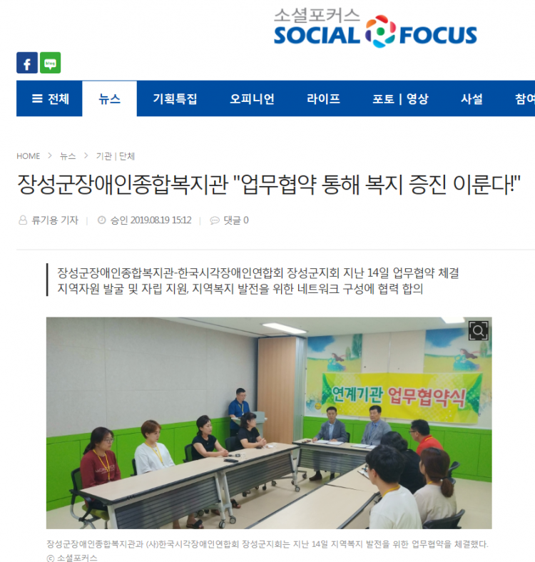 ◎ 기사명 : 장성군장애인종합복지관 "업무협약 통해 복지증진 이룬다!"