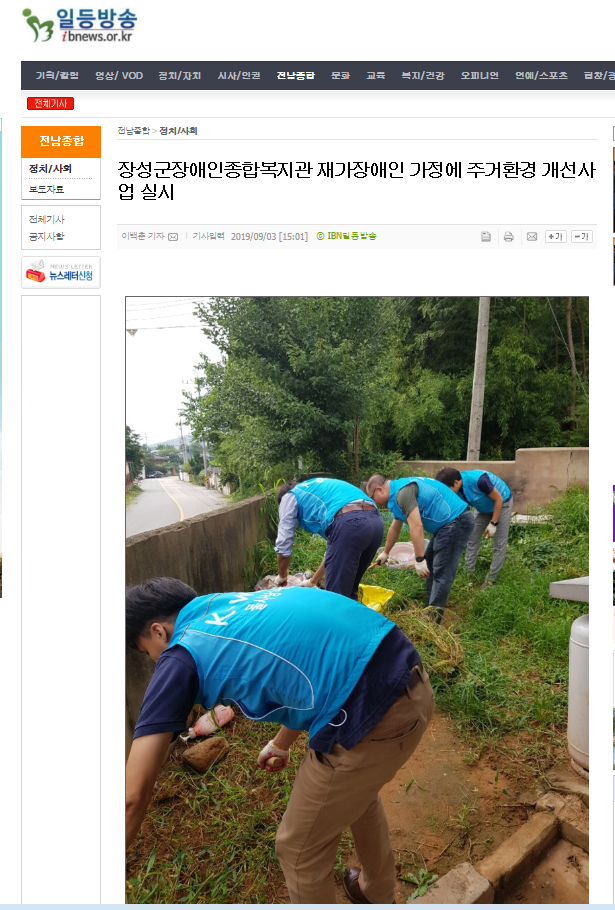 ◎ 기사명 : 장성군장애인종합복지관 재가장애인 가정에 주거환경 개선사업 실시
