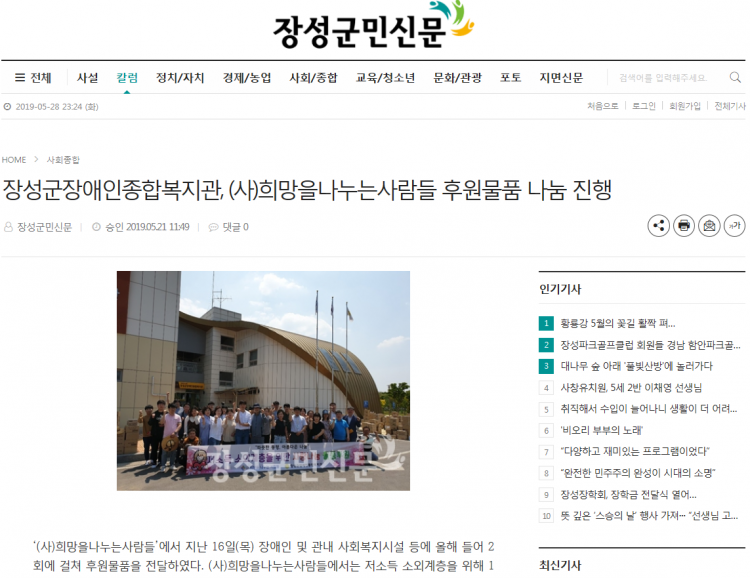 | 이전글 장성군민신문-장성군장애인종합복지관 지역사회공헌활동… |