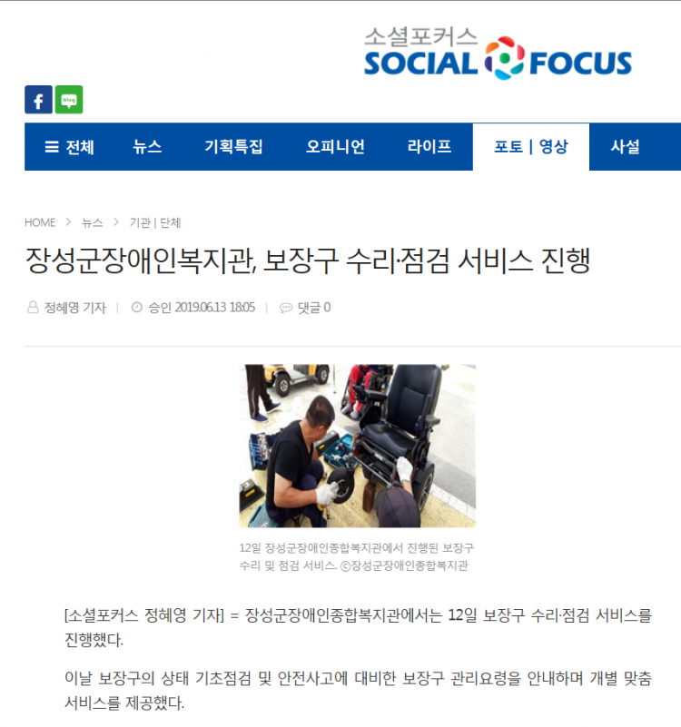 ◎ 기사명 : 장성군장애인복지관, 보장구 수리·점검 서비스 진행