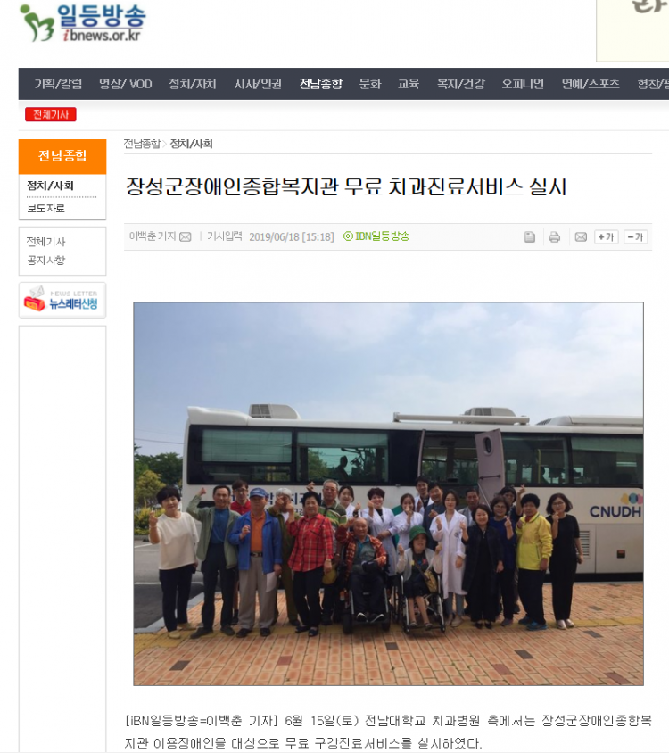 ◎ 기사명 : 장성군장애인종합복지관 무료 치과진료서비스 실시