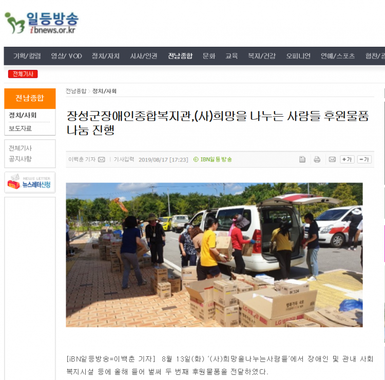 | 이전글 장성방송국-장성군장애인종합복지관,(사)희망을 나누는 사람들 후원물품 나눔 진행 |