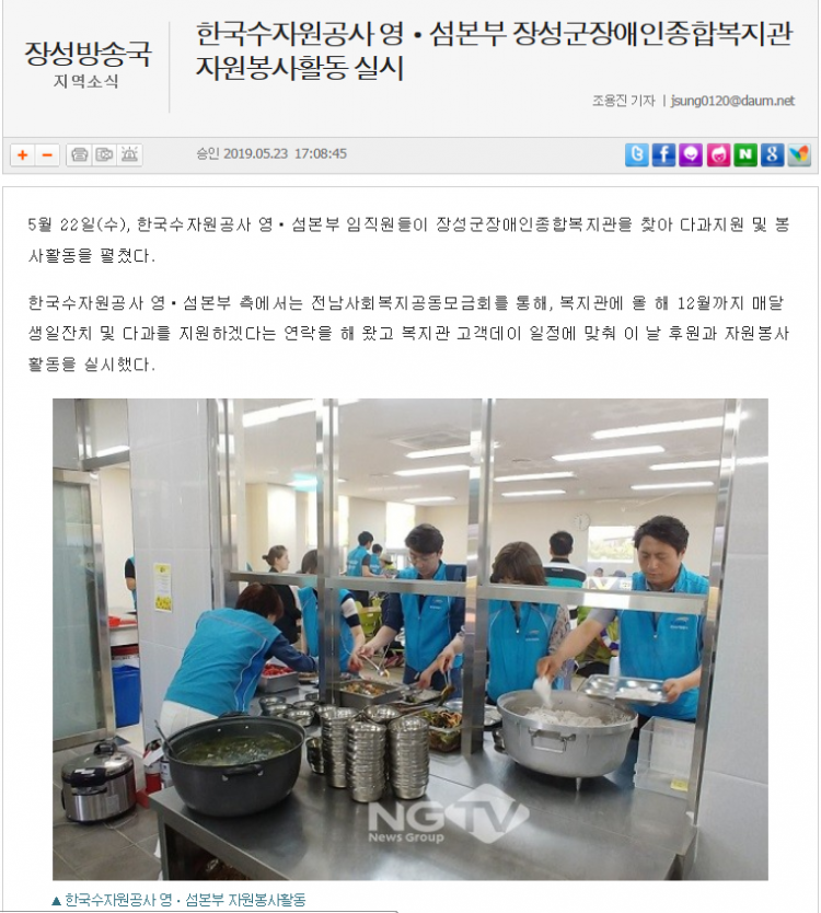 ◎ 기사명 : 한국수자원공사 영‧섬본부 장성군장애인종합복지관 자원봉사활동 실시
