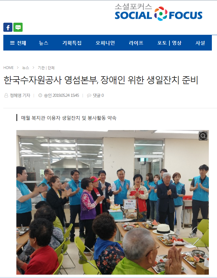 ◎ 기사명 : 한국수자원공사 영섬본부, 장애인 위한 생일잔치 준비