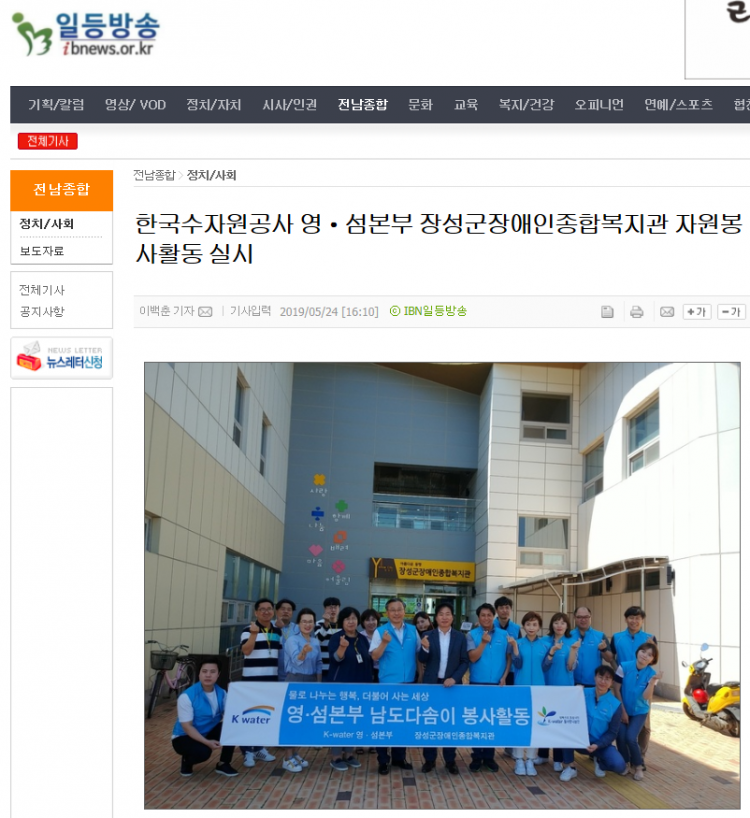 ◎ 기사명 : 한국수자원공사 영‧섬본부 장성군장애인종합복지관 자원봉사활동 실시