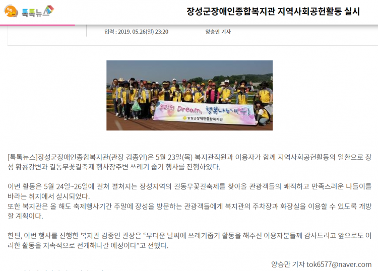 ◎ 기사명 : 장성군장애인종합복지관, '지역사회공헌활동' 실시