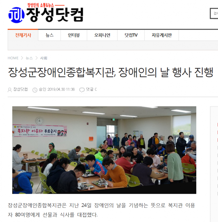 ◎ 기사명 : 장성군장애인종합복지관, 장애인의 날 행사 가져