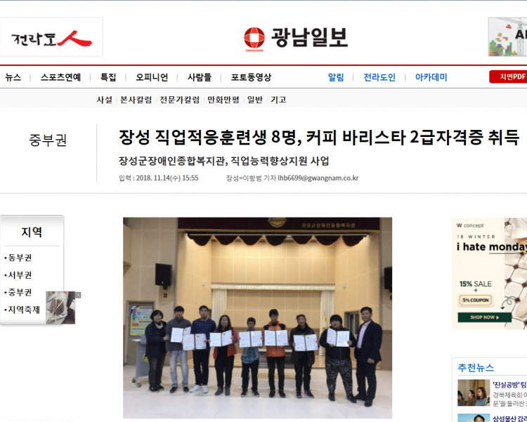 | 다음글 일등방송-장성군장애인종합복지관, 이용자 커피 바리스타 2급자격증 취득!!! |
