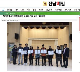 ◎ 기사명 : 장성군장애인종합복지관 이용자 커피 바리스타 취득