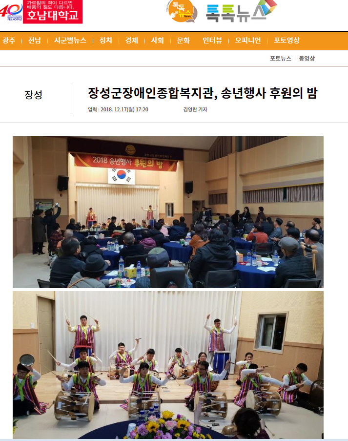 ◎ 기사명 : 장성군장애인종합복지관, 송년행사 후원의 밤