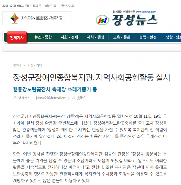| 다음글 장성투데이-장성군장애인종합복지관, 지역사회공헌활동 쓰레기줍기 실시 |