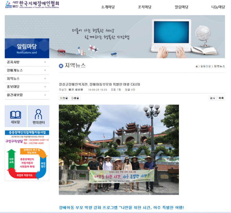 ◎ 게재현황 : 한국지체장애인협회 홈페이지