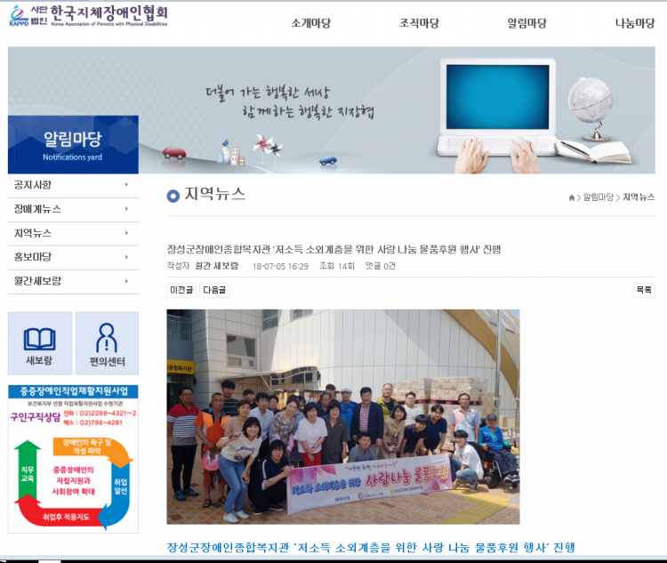 ◎ 게재현황 : 한국지체장애인협회 홈페이지