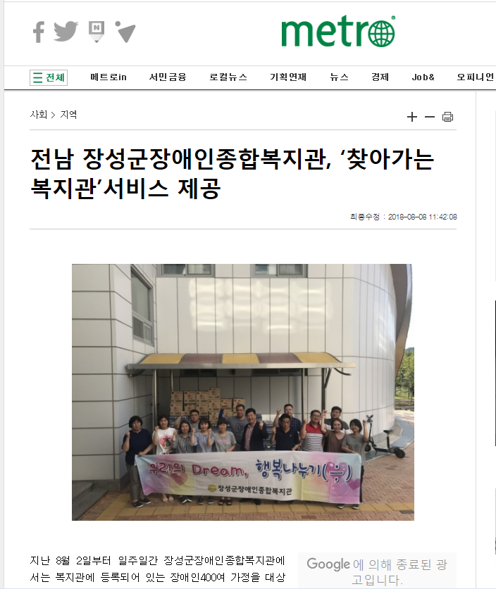 ◎ 기사명 : 전남 장성군장애인종합복지관, ‘찾아가는 복지관’서비스 제공