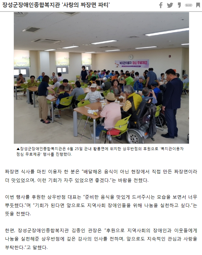 ◎ 기사명 : 장성군장애인종합복지관 '사랑의 짜장면 파티'
