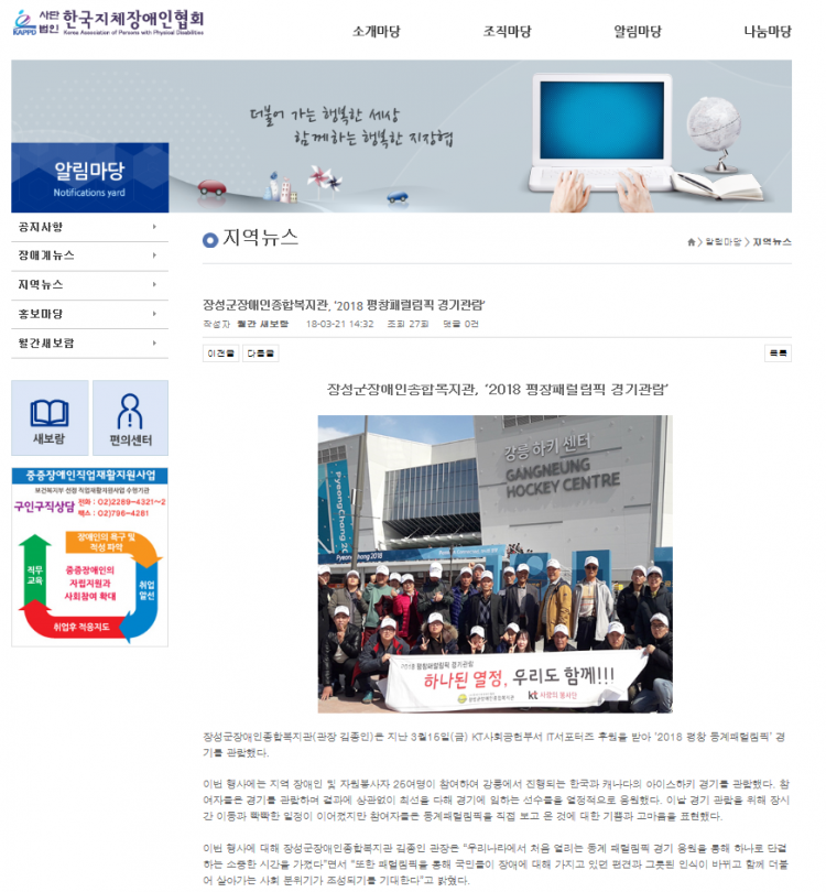 ◎ 기사명 : 장성군장애인종합복지관, ‘2018 평창패럴림픽 경기관람’