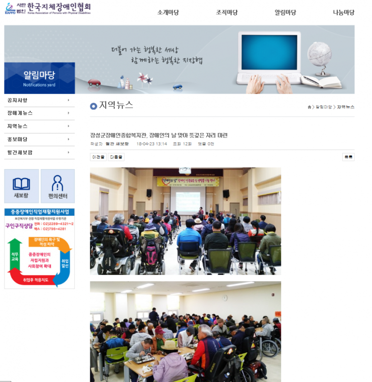 ◎ 게재현황 : 한국지체장애인협회 홈페이지