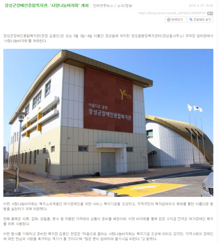 인터넷핫뉴스-장성군 장애인종합복지관, ‘사랑나눔바자회’ 개최