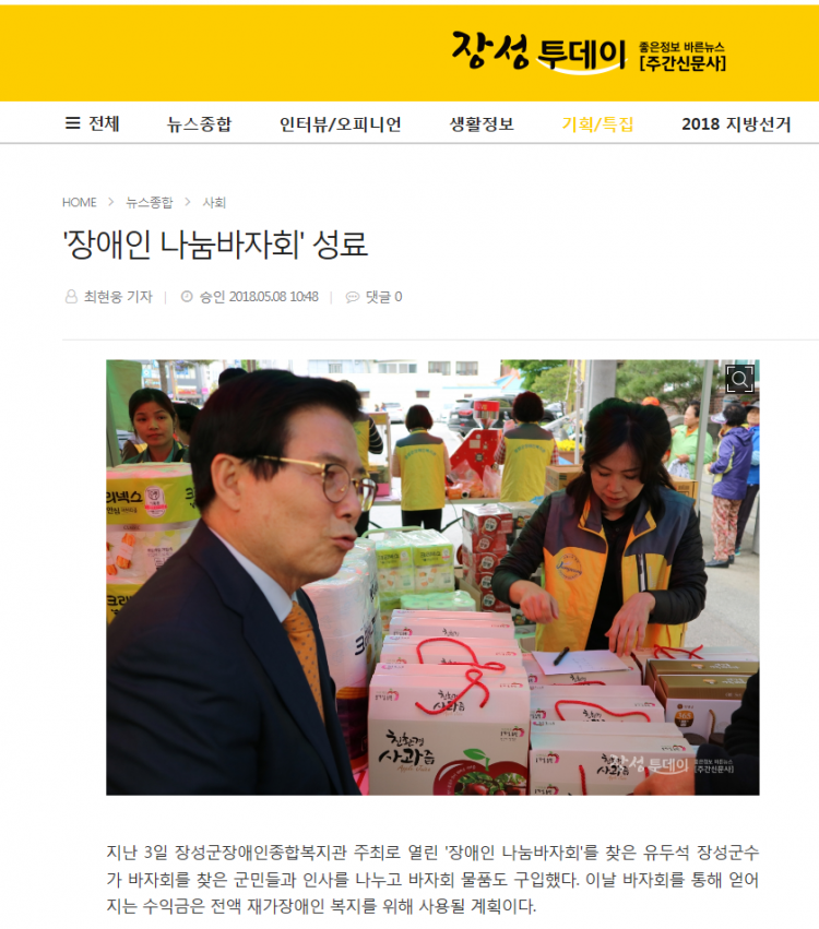 우리군민신문- 장성군장애인종합복지관 '사랑나눔바자회'