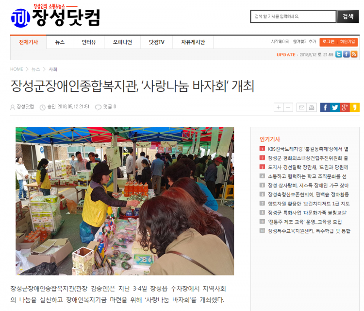| 다음글 우리군민신문- 장성군장애인종합복지관 '사랑나눔바자회' |
