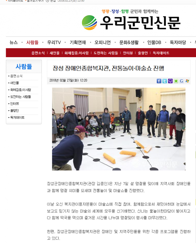 ◎ 기사명 : 장성 장애인종합복지관, 전통놀이·마술쇼 진행