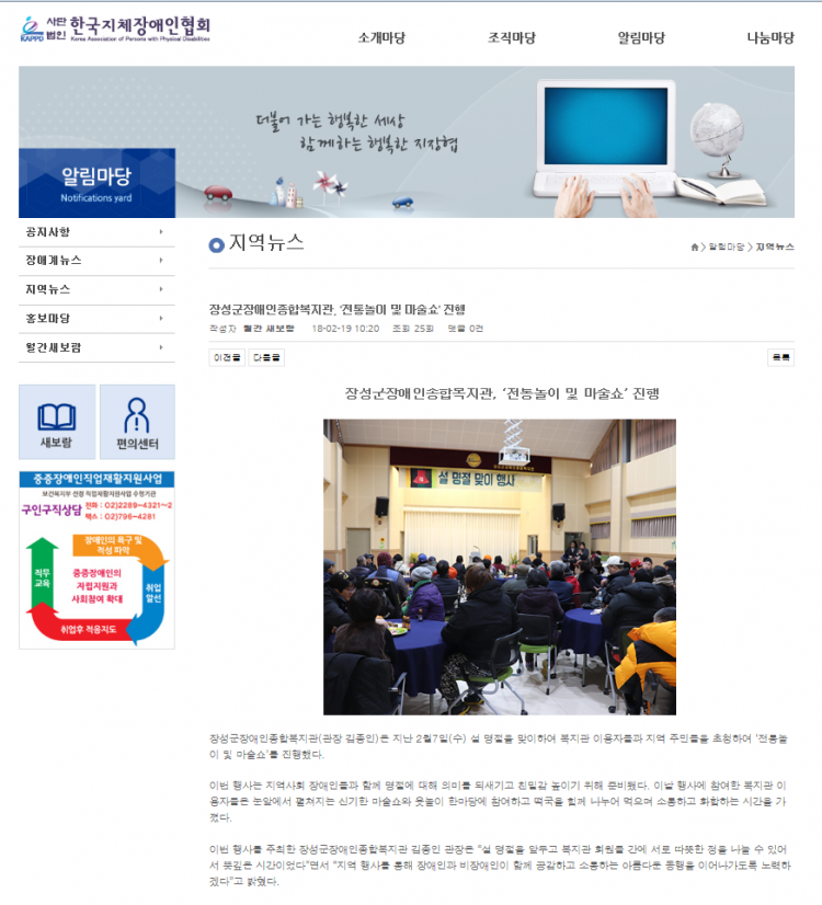 ◎ 게재현황 : 한국지체장애인협회 홈페이지