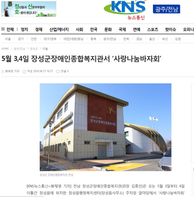 ◎기사명 : 5월 3,4일 장성군장애인종합복지관서 ‘사랑나눔바자회’
