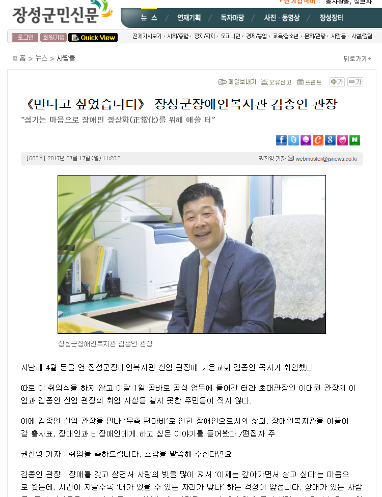 ◎ 기사명 : 장성군장애인종합복지관 김종인관장