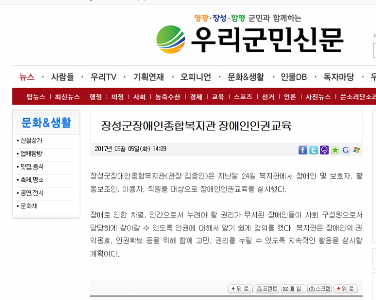 우리군민신문-장성군장애인종합복지관 장애인인권교육