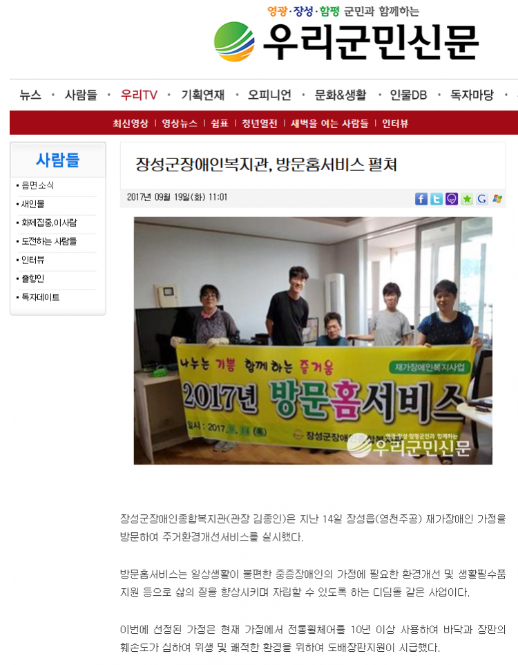 ◎ 기사명 : 장성군장애인복지관, 방문홈서비스 펼쳐