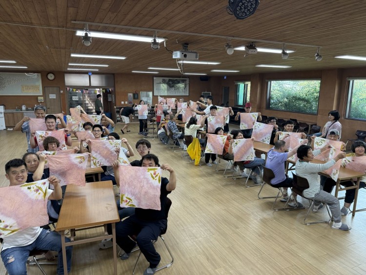 이번 체험은 천연염색 손수건 만들기였습니다. 실내에서 간단한 설명을 들은 뒤 야외로 나가 향긋한 꽃과 풀을 직접 채집했는데요, 무더운 날씨에도 즐겁게 참여해주셨습니다. 다시 실내로 돌아와 하얀 손수건 위에 꽃과 풀을 올려 나만의 디자인을 완성하고, 동전으로 톡톡 두드리며 색을 입혔습니다. 마지막으로 염료를 더해 펼쳐본 손수건은 각자의 개성이 담긴 작품이 되었고, 많은 분들이 만족스러운 미소를 지으셨습니다.
