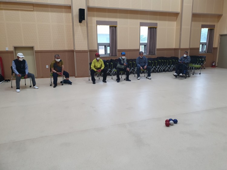 보치아 교실에 처음으로 참여하시는 분이 있어 함께 보치아 경기 방법에 대해 알려주었으며