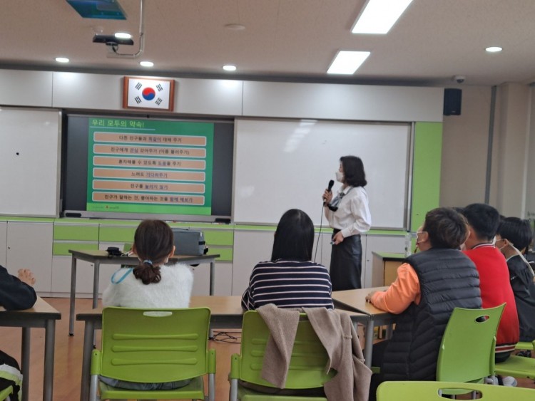 2021년 4월 16일 동화초등학교 장애인식개선교육을 다녀왔습니다. 장애, 비장애 모두 소중한 존재이며 함께 배려와 이해속에 지내야하는 너, 나, 우리가 되어야 함을 알아가는 시간이 되었습니다. '살아가면서 누군가에게 도움을 주면 언젠가 나도 도움을 받을 수 있다'는 고학년 어느 친구의 말이 가슴에 와 닿았습니다. 시각장애인의 보장구인 저시력안경과 안대, 흰지팡이를 체험해 보며 우리 신체 모두 소중하지만 특히 세상의 아름다움을 볼 수 있는 '눈'에 대해 고마운 마음을 나누어 보아 좋았습니다.. 수고해주신 선생님들과 동화초등학교 전교생 모두 감사합니다.