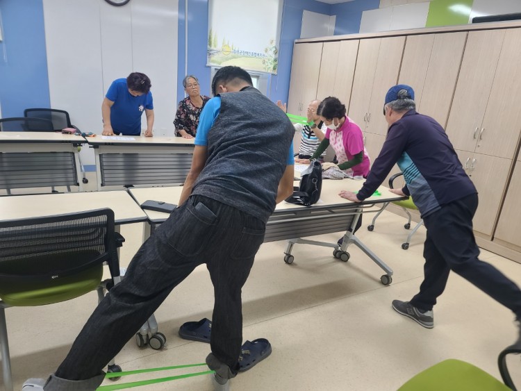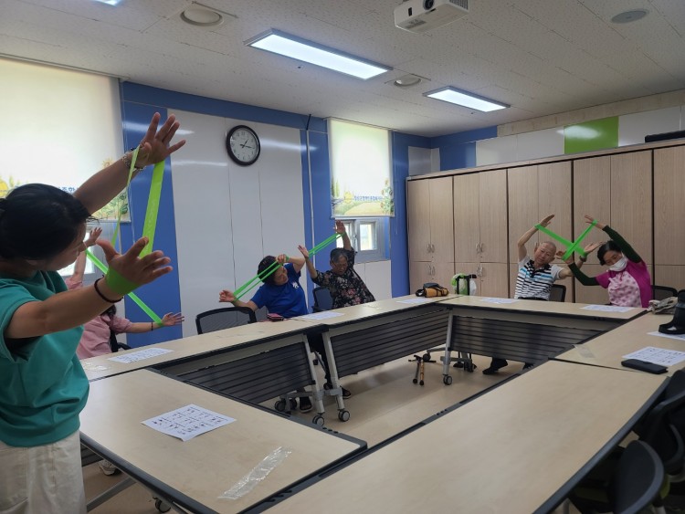 7월 2일 13:00~14:00 1층 세미나실에서 참여자 7명과 함께 소도구운동 3회기 실시했습니다.