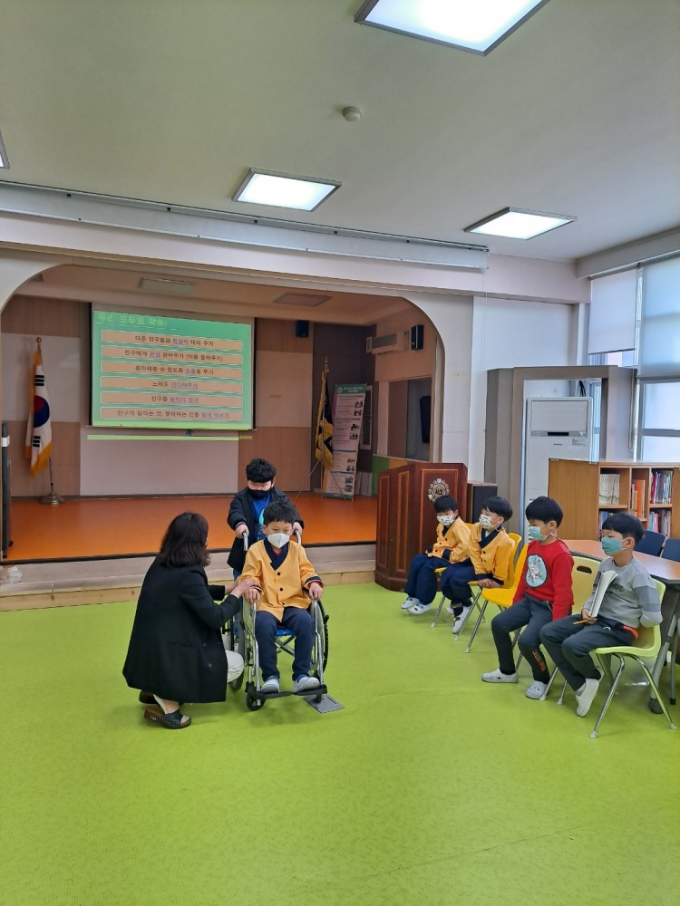 2021년 장애인식개선교육을 3월 26일 서삼초등학교로 다녀왔습니다. 28명의 학생들과 함께 장애의 유형과 호칭, 특성에 대한 바른 인식을 심어주고,