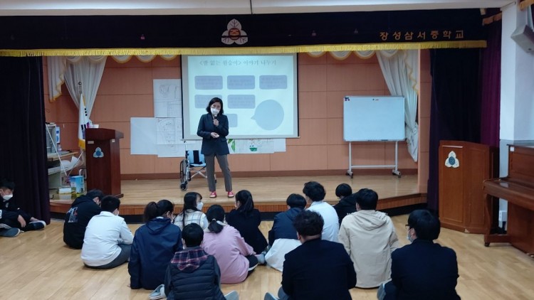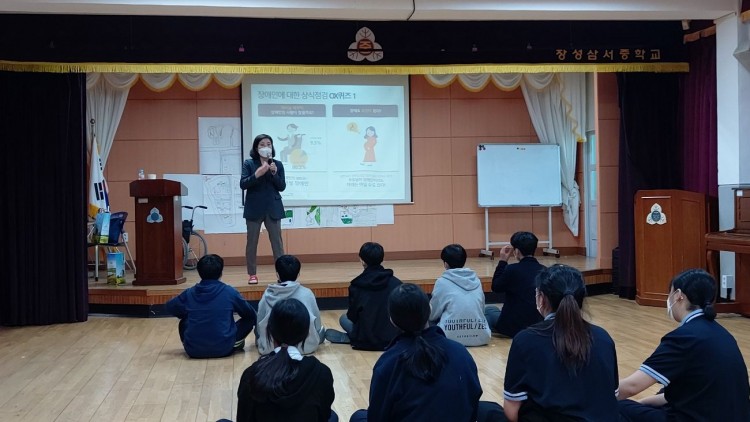 2021년 3월30일 (화) 삼서중학교 전학년 대상으로 장애인식개선교육을 진행하였습니다.